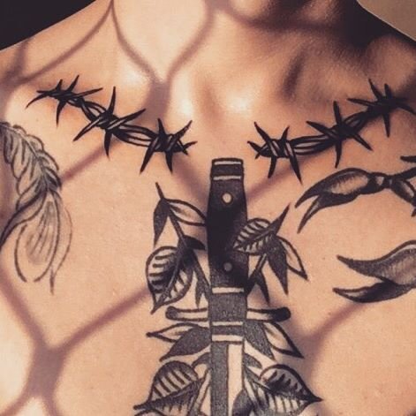 Татуировка колючая проволока — это конечно в основном тюремная символика. Но в наше время ее предпочитают и не сидевшие молодые люди. Девушки таких изображений сторонятся, предпочитая более женские. Раньше татуировки с колючей проволокой кололи в основном зеки, изображая шипами каждый год своего сидения. И еще такая татуировка как бы означала негласное вступление в тюремное сообщество. В наше время уже тюрьмы стали более современными и колючую проволоку заменили электрическим током. Поэтому сейчас она не является символом тюремщика. Молодежь все чаще стала просить мастеров сделать им такие тату без особого смысла. Еще такой тематикой увлекаются любители рока и любой другой альтернативной музыки. Различные движения в виде готов тоже частенько заказывают эскизы с колючей проволокой. Чаще всего молодые парни наносят такую проволоку в виде браслета на запястье.