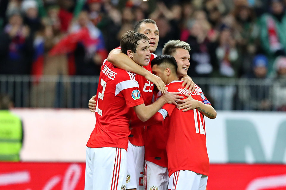 Сборная России по футболу вышла на Евро-2020 Сборная России по футболу одержала разгромную победу над национальной командой Кипра в матче отборочного турнира к чемпионату Европы 2020 года. Встреча состоялась 13 октября в Никосии и завершилась со счетом 5:0 в пользу россиян. На девятой минуте счет открыл полузащитник Денис Черышев. На 22-й минуте преимущество команды увеличил хавбек Магомед Оздоев. На 27-й минуте защитник Кипра Костас Лаифис получил красную карточку за грубый подкат. Во втором тайме голами отметились форвард Артем Дзюба (79-я минута), хавбек Александр Головин (89-я минута) и Черышев (90+2) Таким образом, сборная России набрала 21 очко в группе I и обеспечила себе выход в финальную стадию Евро-2020. Лидером группы является команда Бельгии, набравшая 24 очка из 24 возможных и также получившая путевку на чемпионат Европы. Киприоты занимают третье место, имея в активе 10 очков. Следующий матч сборная России проведет 16 ноября. Соперником станет команда Бельгии