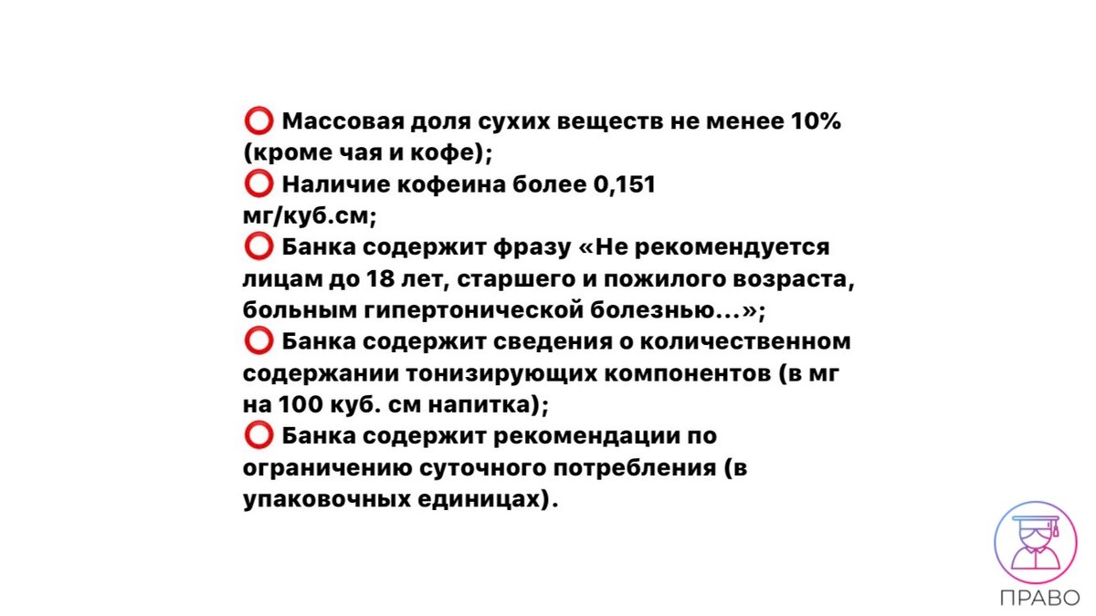 Сейчас пойдёт речь только об энергетиках без содержания алкоголя, так как продажа любых напитков с небольшой дозой алкоголя до 18 лет воспрещена законом. Все больше и больше молодежи употребляет новомодных энергетических напитков, а у старшего поколения возникает вопрос о законности реализации этого напитка среди несовершеннолетних. Федеральным законоположением торговля энергетическими напитками не регулируется! В некоторых регионах было принято уложение о табу на продажу несовершеннолетним лицам тонизирующих напитков, имеющих следующие параметры: На самом деле, речь идёт именно об энергетиках, так как они относятся ко всем выше перечисленным пунктам. В Российской Федерации такой закон существует примерно в 40 регионах. Чтобы узнать, действует ли такой законопроект в вашем регионе, просто наберите в интернете такой запрос: Не бойтесь отстаивать свои права. Закон всегда на вашей стороне! Не забывайте подписываться на наш канал и ставить лайки. Это мотивирует рассказывать ва
