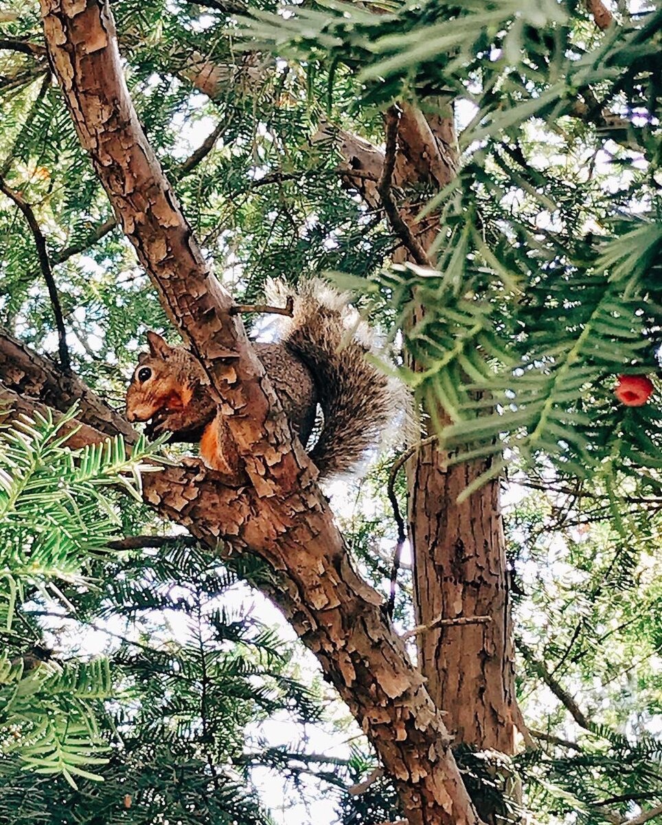 В Огайо белок много. Очень много) По крайней мере, в Колумбусе. В сентябре, когда мы гуляли на территории OSU (местный университет), они в каком-то нереальном количестве перебегали нам дорожки, скакали по деревьям и вообще наслаждались жизнью) Муж говорит, что в будни их так не видно. Предположили, что в выходные просто нет такого количества людей) и им спокойнее.