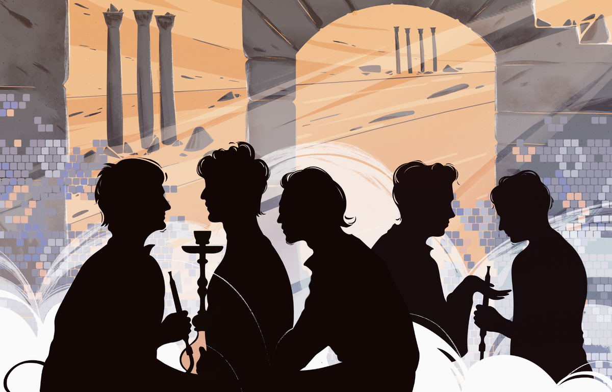 Развернувшись боком к телевизору, я постарался не смотреть на то, что происходило по ту сторону экрана. В кальянной не было свободных мест- мы с Мануэлем сидели в центре просторной белой залы, где нас окружали десятки мужчин в кожаных куртках. У некоторых на шее были повязаны арафатки. Мужчины курили кальян, а многие иногда делали перерыв на обычную сигарету.
