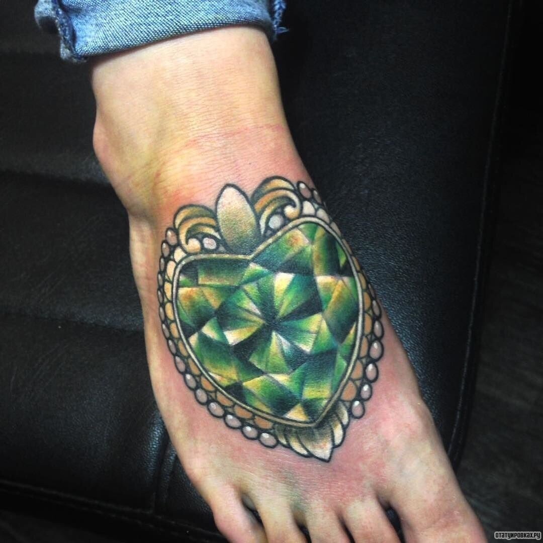 Тату далеко не всегда используется для выражения жизненной позиции или усиления качеств характера. Иногда татуировка — просто украшение тела. Одна из популярных идей подобных рисунков — драгоценности и бриллианты. Бриллиант с древности считается королевским камнем из-за своей красоты и сложности добычи. Чтобы получить бриллиант, требуется специальным образом обработать алмаз, придать его граням ту форму, которая наилучшим образом подчеркивает блеск камня. Изначально огранка не отличалась сложностью: мастер работал только с одной гранью, стачивая ее. Уже позже мастера стали стараться преломить свет в камне. Бриллиант в привычном для нас виде имеет 57 граней. Такая обработка позволяет получить самую красивую игру света. Но превращение алмаза в бриллиант обходится довольно дорого — из-за большого количества граней приходится очень много стачивать. На выходе размер бриллианта гораздо меньше размера исходного алмаза. Более доступные, но не менее красивые варианты огранки: овал, треугольн