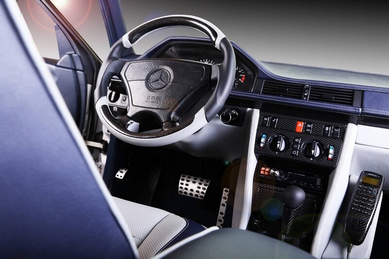 Mercedes E500 W124 по сегодняшним меркам все еще является способным автомобилем, однако время не пощадило его квадратный стиль интерьера/экстерьера. Модель разрабатывалась в тесном сотрудничестве с Porsche, поэтому каждый E500 был вручную собран штутгартским производителем спорткаров. Он был оснащен 5-литровым V8 мощностью 322 л. с. и крутящим моментом 480 Нм. Эти показатели позволяли среднеразмерному седану разгоняться до 100 км/ч примерно за 6 секунд и достигать максимальной скорости в 260 км/ч. Вы бы стали подвергать тюнингу подлинный E500? Компания Carbon Motors на это решилась (по крайней мере, косметически). Интерьер был полностью переделан: сиденья – в серо-голубой кожаной комбинации, потолок – в голубой алькантаре, стойки и приборная панель – в голубой коже с серой декоративной прострочкой. Финальный штрих от Carbon Motors – это конечно же обилие углеволоконных компонентов. Все внутренние панели, а также руль и даже телефон Nokia изготовлены из премиального углеволокна. Фотогра