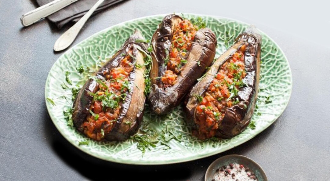 Этот рецепт баклажан популярен в турецкой кухне. С незначительными изменениями блюдо известно в Болгарии, Израиле, Греции, Албании, Армении и Иране. Название переводится, как «имам упал в обморок». А вот причина его падения расходится от легенды к легенде. По одной версии он упал от аромата блюда, по другой – узнав цену. Нам понадобится: 1. Баклажаны – 6 шт. (около 900 г) 2. Лук красный - 2 шт. 3. Чеснок – 4 зубчика 4. Петрушка, кинза – все по 1\2 пучка 5. Болгарский перец - 1 шт. 6. Помидоры (средние) – 5 шт. 7. Сахар - 1 ч. л. 8. Зира молотая - 1 ч. л. 9. Томатная паста - 1 ст. л. 10. Масло растительное - 4 ст. л. 11. Соль, свежемолотый черный перец. Готовим 1. Срежьте часть кожи баклажанов, чтобы получились широкие полоски. Надрежьте баклажаны вдоль, но не прорезайте их полностью. Посолите баклажаны и оставьте на 30 мин. 2. Разогрейте духовку до 220 °С. Смажьте форму для запекания оливковым маслом и положите баклажаны. Запекайте 20 мин. 3. Очистите лук и чеснок и мелко нарежь