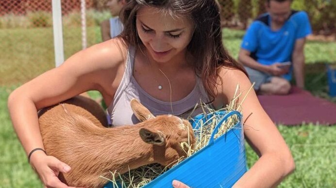 В последнее время йога с козами проводится в главном штабе Google, называемом Googleplex в Маунтин-Вью, Калифорния. По Инстаграму гуляют фотографии, на которых сотрудники Google занимаются йогой с козами в Googleplex. В чём ажиотаж вокруг йоги с козами? Йога с козами набирает популярность в странах Запада. Это практика, в которой козы запрыгивают на спины практикующим и заставляют их улыбаться. Йога с козами — позитивный опыт для всех участников. У студентов улучшается самочувствие и уходит беспокойство и стресс, потому что йога с козами делает их счастливыми. По материалам https://www.yoga360news.com/