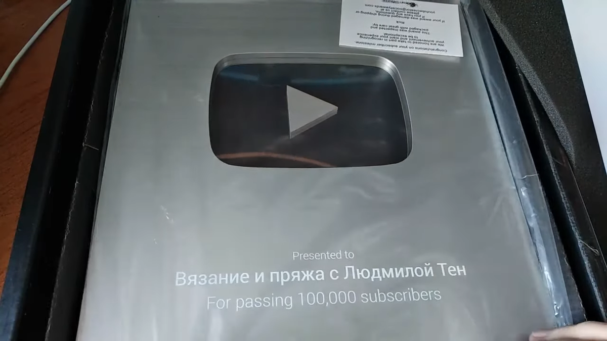 Серебряная кнопка на канале "вязание и пряжа с Людмилой Тен"