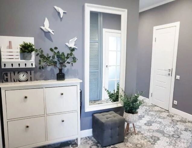 В этой статье я поделюсь свами одним из вариантов дизайна прихожей, который на мой взгляд выглядит очень великолепно, гармонично и в тоже время уютно. Квартиры принадлежит одной моей хорошей знакомой. Которая, как я понял имеет отличный вкус и достаточно неплохо разбирается в дизайне. Пол в прихожей сделан из плитки с красивым рисунком. Двери имеют белый цвет, приобретены они были в магазине OBI. Скажу так, стоят они не очень дорого, но вписываются в данный интерьер просто превосходно. Также к ним был куплен плинтус такого-же цвета. На сами стены наклеены обои интересного цвета, стоят они тоже не так колоссально дорого. Зеркало было приобретено в ИКЕА. Девушка очень часто что-то меняет в своем интерьере, и у неё это получается довольно здорово. Не так давно я был и Икеа, и видел там такую плитку или что-то по типу такой, но не мог даже подумать, что она сможет так красиво вписаться в данный интерьер, выглядит превосходно. Как мне рассказала подруга, изначально она хотела только пере