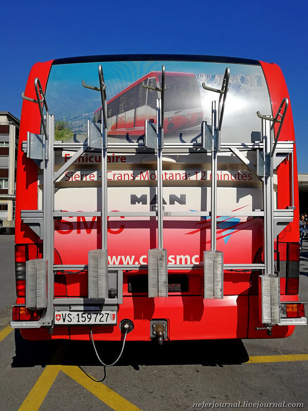 Станция Sierre/Siders, кантон Вале. Мы вышли из поезда и запихнули чемоданы в автобус, чтобы ехать дальше в горы. Как вдруг я увидела это. На задней стенке автобуса имеются вот такие приспособления. Для чего?