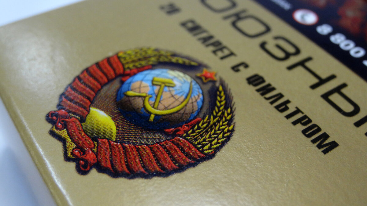 Начиная с развала СССР "советская" тематика была популярным мотивом в отечественной табачке. Кто-то ассоциировал такие названия с "советским качеством", кто-то с "мощью родины", а кто-то просто ностальгировал по "золотым денёчкам". И кажется, что "Союзные" уж точно были ещё в СССР! Ан, нет. Сигареты с таким названием появились лишь в начале 2000-х годов! Дизайн "Союзных" выполнен хоть и простовато, но зато довольно гармонично. "Бронзовый" фон пачки украшен гербом СССР и это единственное украшение пачки, все сопроводительные надписи, такие как имя бренда, количество и тип сигарет выполнены различными шрифтами в чёрном цвете. Конструкция пачки уже несколько устаревшего типа, с прямыми углами. Картон упаковки тонковат, а сама коробка особой аккуратностью не отличается - на фото видны некоторые перекосы на швах. К тому же плотность картона, да и несколько кривоватая сборка, после открытия пачки обратно уже не закрывается. По крайней мере плотно. Начав "копать" сведения о производителе выя