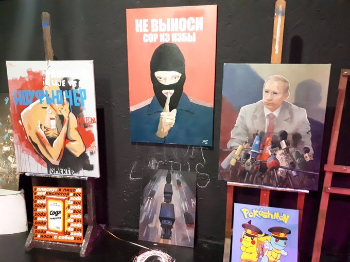 Из-за разгрома силовиками официально анонсируемой выставки «Осень Пахана», выставку пришлось проводить в формате «только для своих». А если бы это было на улице, то повторилась бы история с бульдозерной выставкой, короче лютый совок настал. ВИДЕО: Если кто-то не в курсе, то силовики сорвали открытие выставки «Осень Пахана» 7 октября. Тогда в галерею DorDor на Ходынской улице пришли чиновники, которые представились сотрудниками Пресненской управы, потом полицейские вывели всех посетителей из галереи и работники управы автогеном заварили металлическую дверь в помещение. После этого арендодатель забрал помещение под галерею DorDor у художников. Кураторы выставки пытались провести ее в других галереях, но везде получали отказ из-за давления ФСБ. Совок, чо.