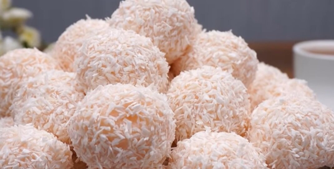 Здравствуйте дорогие читатели, сегодня приготовим очень вкусный, нежный десерт. Перед которым никто не сможет устоять. Если вы приготовите его один раз, все кто его попробовал, будут спрашивать у вас рецепт ,или просить приготовить ещё и ещё. Для приготовления нам понадобится: Нам понадобится кастрюля. Высыпаем в нее манку, сахар, упаковку пудинга. Хорошо перемешиваем и заливаем смесь холодным молоком. Все снова перемешиваем и ставим на плиту, варить крем будем на среднем огне постоянно помешивая, до того момента, пока крем не загустеет и не начнет "хлюпать" После варки крем должен полностью остыть, но необходимо его периодически помешивать. Крем остыл, теперь слепим из него шарики, примерно с грецкий орех. Для того чтобы катать шарики было легче, руки можно смачивать в холодной воде, тогда крем прилипать не будет. Осталось лишь высыпать кокосовую стружку в тарелку и обвалять шарики. Вкусный, красивый и необычный десерт готов. Выкладывайте десерт на тарелку, несмотря на крем, в кокосов