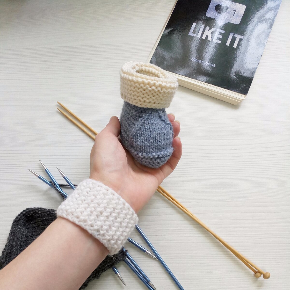 Свяжите тестовые носки-пинетки, чтобы проникнуться их конструктивом, потому что будут конкретные цифры, конкретная толщина пряжи и спиц.