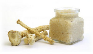 Также корень хрена можно высушить. Очищенные и помытые корни нарезают тонкими (не толще 5 мм) ломтиками, или натирают на средней терке. Натерев, выложите хрен тонким слоем на противень и отправьте в духовку сушится. Высушенные ломтики или тертый хрен измельчите, засыпьте в стеклянную банку, накройте крышкой и храните в прохладном месте. Только не забывайте за час-полтора до употребления этот порошок замочить в воде.