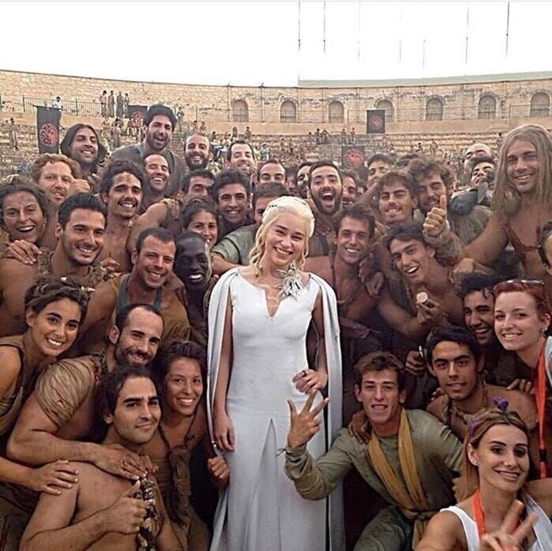 Продолжение смешных и забавных фото со съемок телесериала Игра престолов Приятного просмотра. Групповое фото, центральный герой в центре Могучие всадники, остальное до рисуется Мать драконов сейчас как будто на ховербайке, на самом деле это будет дракон, осталось наложить графику с текстурами Не такой уж и великан Между сценами можно и подурачиться Сцена казни, подготовительный момент День рождения за решеткой это весело Скорчить рожицу, скосить глаза, не проблема Сцены боев тут не так выразительны, зато познавательны Дети есть дети, даже на съемках Игра веселых, зеленых пальцев Селфи с поцелуем бородатых дядек Если убрать оранжевый зонтик, то картинка станет не такой яркой Общение между дублями полезная вещь Не с кем оставить песика, возьми его с собой Групповая фотография, со съемок, хороший пост в инстаграм Забавный чепчик Ну тут прям любовь Захватнический отряд зеленых гуманоидов