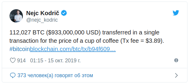Всмотритесь в картинку выше. Что вы видите? Да, да, это жесть! За перевод 112 тыс биткоинов (а это, минутку, 933 миллиона долларов!)) с одного кошелька на другой человек заплатил всего 3.89 доллара! А банки? Сколько бы взяли за эту работу эти мерзкие пираты? Для того, чтобы просто переписать в компьютере количество нулей и прочих цифр на двух счетах? Они бы взяли ооочень много. Тем они и живут. Поэтому они и не любят криптовалюты.