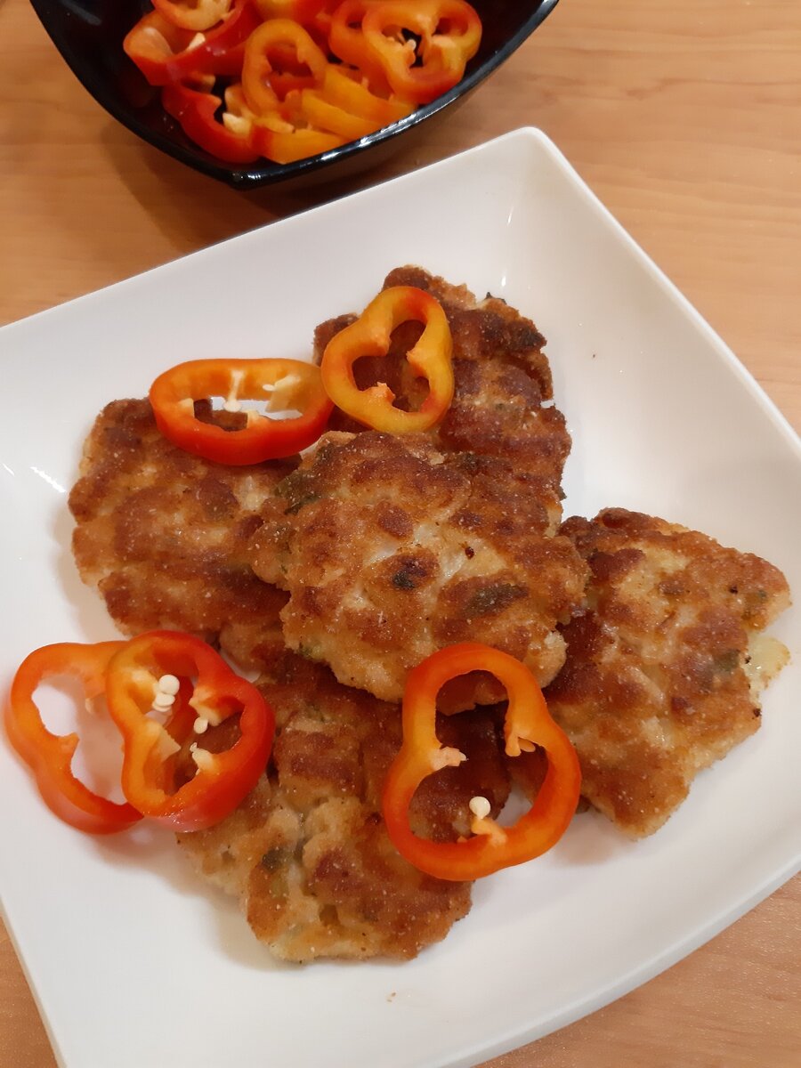 В нашей семье очень уважают всевозможные котлеты и этот рецепт один из самых любимых! Эти без преувеличения восхитительные котлетки могут достойно украсить и праздничный стол, потому что обычными их точно не назовешь! Итак, собственно, рецепт! Ингредиенты: Мякоть свинины - 500-600 г, Маленькая луковица - 1 шт., Чеснок - 2-3 зубчика, Яйцо - 1 шт., Зелень любая - несколько веточек, Майонез - 2 ст. л., Белый хлеб - 2 ломтика, Молоко или вода - 100 мл, Соль, перец по вкусу, Мука или панировочные сухари для обваливания, Масло для жарки. Также нам понадобится глубокая миска для приготовления фарша. Мясо я режу мелким кубиком. Гораздо удобнее делать это, если оно будет подмороженным. Если же у вас охлажденное мясо, нарежте его ломтями, толщиной 1-1,5 см и прямо на доске поставьте в морозилку, оно довольно быстро схватится. Лук, чеснок и зелень очень мелко порубить. Белый хлеб замочить в молоке, измельчить его руками и добавить к фаршу. Туда же кладем майонез, яйцо, соль, перец.
