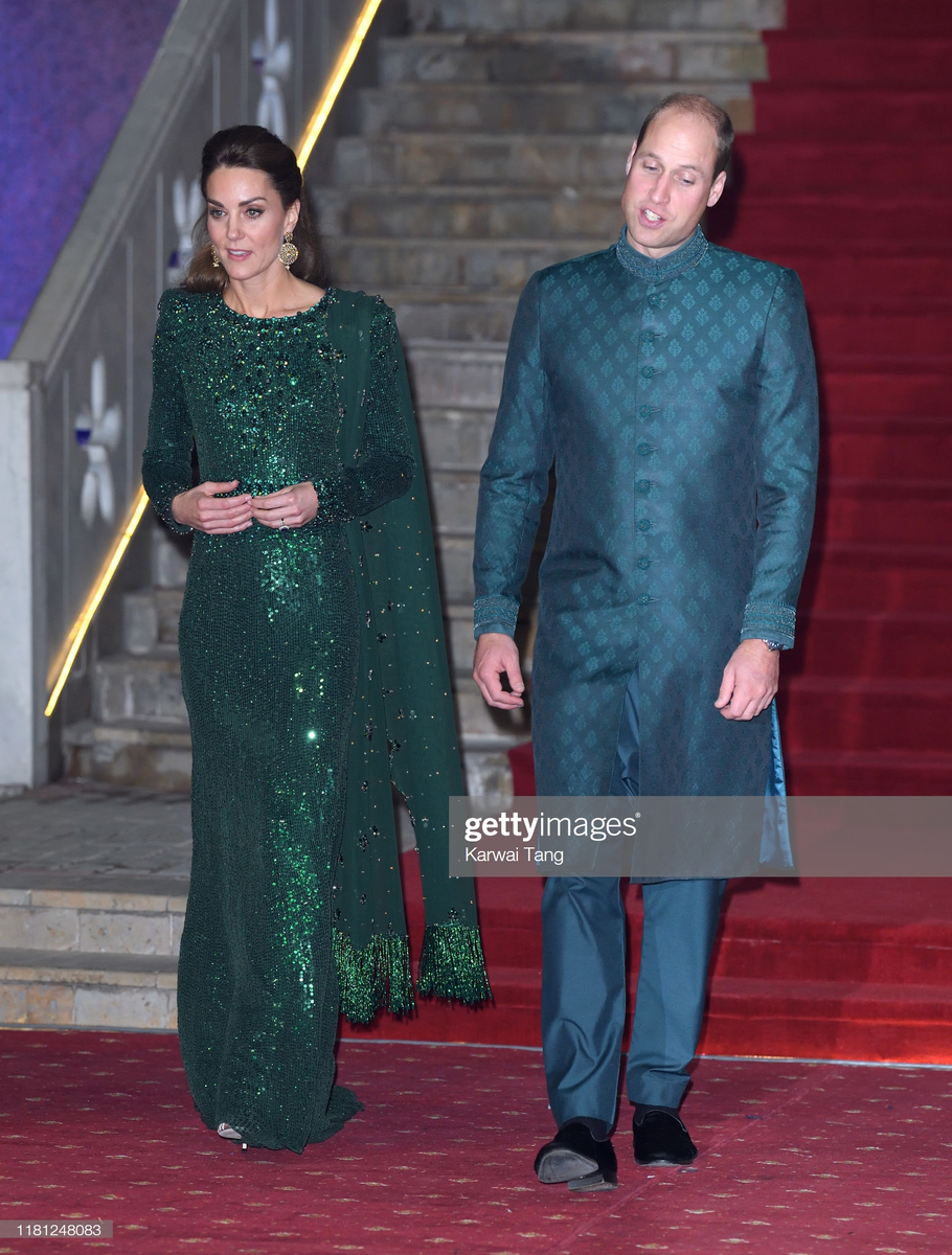 Тур в Пакистан в этом году у герцога и герцогини Кембриджских длится всего 5 дней и ни одно из мероприятий в целях безопасности не объявляется заранее, поэтому во вторник принц Уильям и Кейт Миддлтон удивили нас аж тремя выходами. Утром герцоги посетили столичную школу, где общались с учениками и учителями, узнали многое о государственной программе совершенствования образования. Затем уже с учениками других школ Уильям и Кейт посетили местный парк, где не только совершили приятную прогулку, но и наблюдали за дикими животными. Успели они также встретиться с президентом Пакистана. Вечером пара совершает уже второй в этом туре гала-выход. На приеме в честь визита герцоги и герцогини Кембриджских в Исламабаде виновники торжества появились в традиционных костюмах - сальвар-камизах, которые, как известно, можно носить и мужчинам и женщинам. Кейт Миддлтон, которая, кажется, не может быть прекраснее, чем она есть, удивляет нас все больше и больше. Темно-зеленое платье от любимого бренда герцог