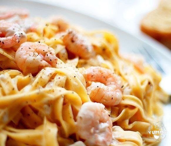 ᅠНеделю мечтаю о пасте с креветками может хоть вы найдёте время ее приготовить?) Рецепт проверенный Ингредиенты: Спагетти из твёрдых сортов пшеницы ~80 -100 г креветки - 150 г сливки ( 10% ) - 150 мл чеснок - 2-3 зубчика луковица небольшая - 1 штука соль, перец, приправы - по вкусу Приготовление: 1. Отварить спагетти согласно инструкции на упаковке. 2. ᅠЧеснок и лук мелко нарезать. Обжаритвать на сковороде 1-2 минуты. ᅠ3. Далее добавляем креветки. Обжаривать 2-3 минуты, постоянно помешивая. ᅠ4. Вливаем к креветкам сливки. Доводим до кипения, выдерживаем ровно минуту, после чего снимаем с огня. ᅠ5. Макароны смешать с креветками в сливках, тщательно перемешать. Посолить, поперчить по вкусу, добавить приправы.