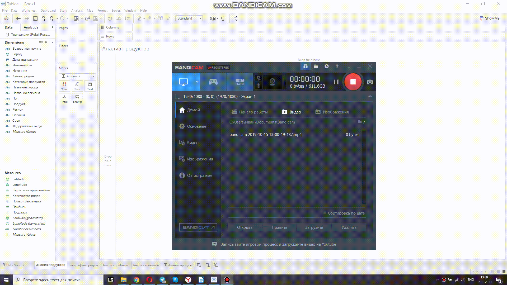 На Gif изображении вы видите процесс построения дашборда в BI решении "Tableau". На первом листе мы анализируем продукты, которые мы продаем.