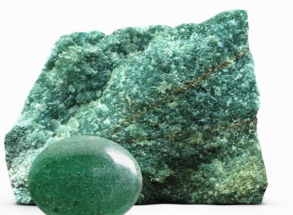 Авантюрин — зеленоватый минерал без включения искусственных "искр". С искрами стекло с кусочками железных или других опилок