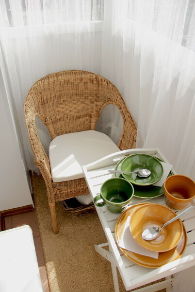 Думаете, что обычный балкон в обычной хрущевке пригоден только для сушки белья, хранения лыж и велосипеда, домашних заготовок, ведер с краской и рабочих инструментов? Нет! Из него можно сделать цивильную террасу для летнего отдыха. Вот например, типичный маленький балкон в квартире-хрущевке. Ширина балкона всего 65 см и длина 2,5 м. Хозяевам, конечно, хотелось бы иметь большой и просторный балкон с местом, где развернуться ))) Но даже из такой крохи можно создать уютное место для романтических завтраков, обедов и ужинов… Приятно посидеть за чашкой чая, да и поработать с ноутбуком можно. Что для этого было сделано? Никаких радикальных ремонтных работ не проводили. Правда, балкон был раньше остеклен, но его не утепляли и не присоединяли к кухне. Обычный балкон. Как у большинства. 1. Вынесли весь хлам. Самое приятное, что расхламление можно сделать совершенно бесплатно. Этот этап не требует никаких вложений, просто надо желание и приложить ручки))) 2. На пол постелили мягкий коврик. 3. На