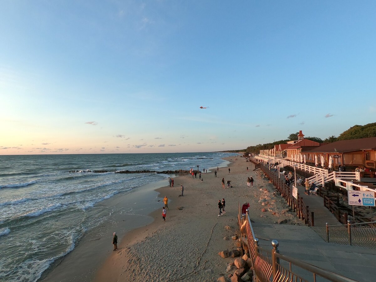 Зеленоградск-небольшой городок Калининградской области, который расположился на берегу Балтийского моря. Как мы позже поняли, это одно из излюбленных мест калининградцев для пляжного отдыха в выходные. Пляж действительно хорош: мягкий золотистый песочек, прозрачная водичка, новенькие кабинки для переодевания и полное отсутствие мусора.