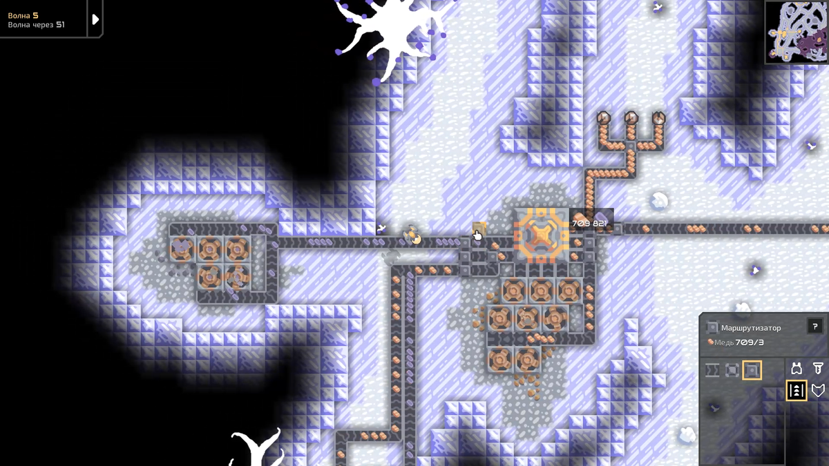 Жанр - пункт, который я редко выделяю в заголовке, но здесь это необходимо. Mindustry - это не клон Factorio, а его смесь с Tower Defence. Вы высаживаетесь на планету и стараетесь собрать на ней максимальное количество ресурсов прежде, чем волны роботов сравняют всю вашу базу с землёй.