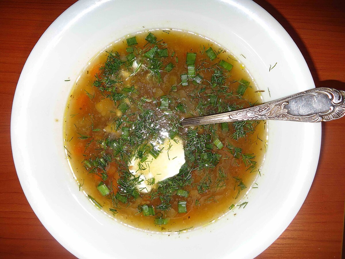 Добавим крутого кипятка до нужной консистенции проварим 10 минут. Добавим по вкусу картофель(мне хватило одной небольшой картофелины) и варим до готовности(10-15 минут). Подаем со сметаной. Приятного аппетита.