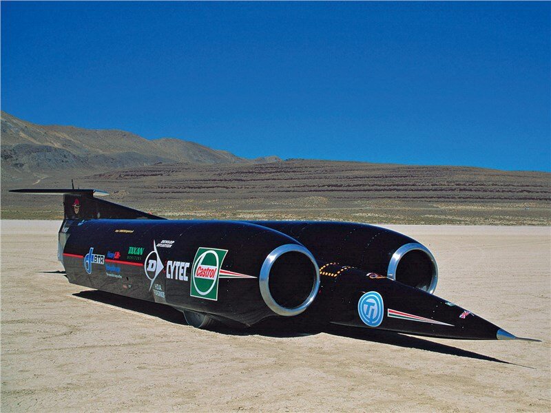 Быстрее звука В 1997 году английский пилот Энди Грин установил рекорд скорости на гоночном автомобиле Thrust SSC. Машина преодолела 21 километр по специальной трассе, проходящей по дну высохшего водоёма в пустыне Блэк-Рок. Скорость гоночного болида составила 1227,9 км/ч. Thrust SSC стал первым в мире транспортным средством, преодолевшим звуковой барьер. Рекордному заезду предшествовало две испытательных поездки, проведённых в Иордании. Энди Грин, установивший мировой рекорд, подвергал свою жизнь серьёзному риску. В конце 90-х годов не существовало компьютерных технологий, с помощью которых можно было моделировать ассиметричные воздушные потоки и продольное отклонение автомобиля от своей оси. Гидродинамическое моделирование не давало всей полноты данных, поэтому создателям автомобиля в некоторых аспектах приходилось действовать вслепую. Конструкторам машины пришлось изменить её конструкцию таким образом, чтобы на переднюю часть корпуса приходилось основная часть прижимной силы. Это прив