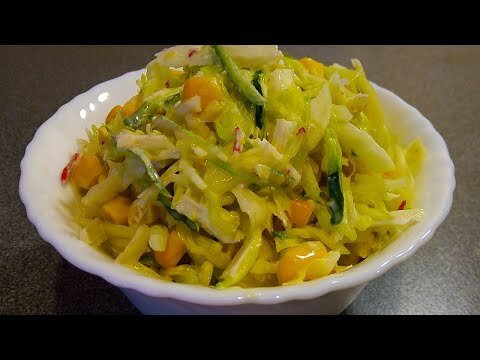 Ничего заранее отваривать, тушить и жарить не надо. Все нарезали и готово. Превосходное сочетание всех ингредиентов дает неповторимый вкус и легкость этому салату. Просто, легко и быстро из обычных продуктов! Способ приготовления: Ингредиенты: 400 г. капусты 150 г. свежего огурца 150 г. крабовых палочек баночку консервированной кукурузы соль и майонез – по вкусу Сначала подготовим все необходимые нам ингредиенты. Тонко нарежем ножом или нашинкуем капусту Слегка подсолим Перемнем руками, чтобы выделился сок На терке, для корейской моркови (можно нарезать тонкими длинными полосками), натрем свежий огурец Без образовавшейся жидкости, огурец добавляем к капусте Тонкой соломкой, при помощи овощерезки, нарезаю крабовые палочки Добавляем консервированную кукурузу Перемешиваем Выкладываем в салатник, заправляем майонезом И подаем к столу. Перед подачей блюдо можно украсить свежей зеленью Если Вам понравился рецепт, то поставьте "лайк". Если возьмете этот рецепт себе в "копилку", то пост