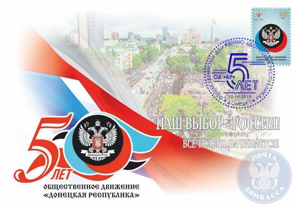 Специальный почтовый штемпель № 6 «Общественному Движению «Донецкая Республика» 5 лет» будет действовать и применяться только 23 октября 2019 года, в день проведения специального гашения.