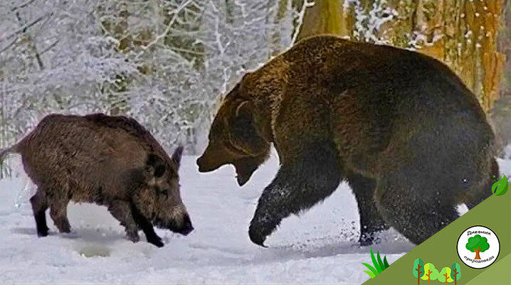 Эта встреча произошла в диких местах России. Людям удалось заснять на камеру как медведь схватил кабана. По кадрам видно, что случай произошел осенью, а значит такая находка крайне полезна для косолапого, ведь перед спячкой нужно поднабрать жирка. Получилось у него полакомиться кабаном или нет? Давайте посмотрим На этих кадрах видно как молодой медведь схватил большого кабана. Но из-за неопытности хищник просто не знал, что с ним делать. Он кусал его за загривок, но много пользы это приносило. Кабан пару раз предпринимает попытки выбраться из мохнатого плена, но не выходит. В конце концов хищнику удалось полностью завалить добычу. Казалось бы участь кабана определенна. Медленная смерть от укусов нерасторопного хищника. Однако все пошло не по плану, когда кто-то из людей решил вмешаться в суровую пищевую цепочку. Медведь испугался и дал дёру, а ошарашенный кабан ещё долго лежал на земле пытаясь прийти в себя. Казалось бы, люди спасли кабана, вроде хорошо. Однако в природе не вс