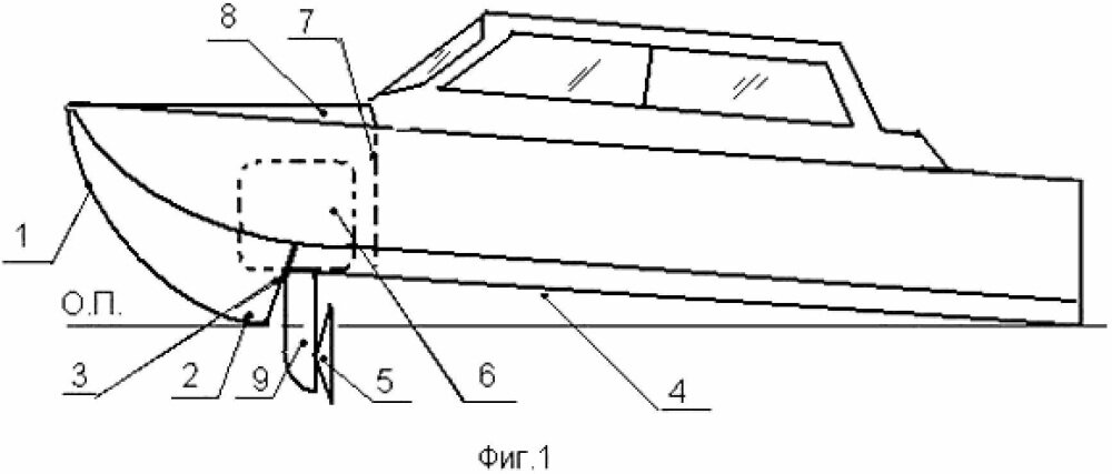 На днях я наткнулся на очень интересный проект. Судно переднеприводное с поперечным реданом Изобретение относится к области судостроения, в частности к скоростным судам. Не буду вдаваться в подробности, а напишу простым языком, ссылочку ну подробное описание оставлю в конце. Как известно, зачастую из-за большой скорости и давления на корму многие катера могут вставать свечкой и даже переворачиваться.. Парень поставил на свой катер движки, явно более мощные, чем необходимо для этого судна, и поставил свою лодку на дыбы. Собственно, ни чего удивительного здесь нет, я видел как резиновый Ямаран 360 под Тохатсу 18 ходил на хвосте, и водила даже умудрился перевернуть его, чудаков везде хватает. Технической задачей этого изобретения является создание такой цельной конструкции обводов судна, которое бы в полной мере использовало передний привод тянущего движителя, без замыва днища отбрасываемой струей от движителя, для снижения гидродинамического сопротивления. Возможность работы кор
