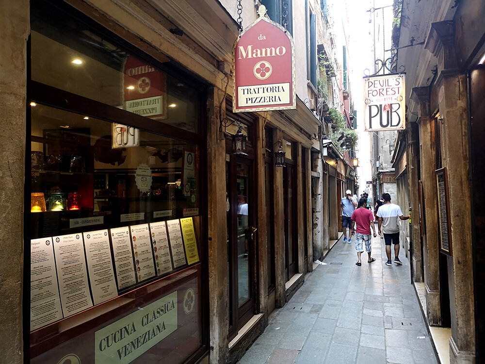 Рестораны в Венеции – на каждом шагу. А запахи такие, что хочется зайти в первый попавшийся! Но тут надо быть осторожным: можно налететь на весьма небюджетный счет! Не зря говорят, что выбрать ресторан в Венеции – это целая наука. Местные жители дали мне три ценных совета. Во-первых, обращать внимание, включены ли в стоимость счета чаевые, и если включено сразу 10-12% - уходить. Сразу скажу, у нас так сделать не получилось - я не поняла, как выяснять размер "коперто" при входе в ресторан:) Во-вторых, не стараться попасть в ресторан, с площадки которого открывается шикарный вид. Такие места – дороже. И в-третьих, не заходить в те места, где предусмотрен человек, который на улице зазывает прохожих. Итак, сколько стоит поесть в Венеции? Процентов на 20 дороже, чем в любом другом городе Италии. Вино, например, будет стоить около 30 евро за бутылку, тогда как во Флоренции оно стоит 20. В Италии не приняты большие меню. Хорошие рестораны специализируются на каких-то конкретных блюдах. Од