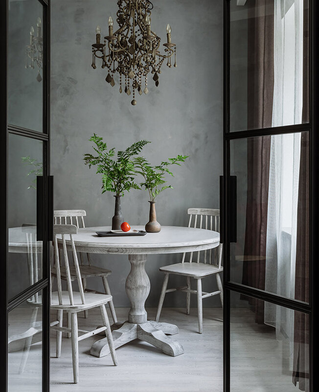 Дизайнер Елена Сидорина оформила московскую квартиру площадью 59 кв. метров. Задачей было создать современный интерьер, не лишив его шарма старого фонда. По теме: Елена Сидорина: квартира 98 кв. метров в Петербурге «Интерьер создавался для молодого человека, который провел свое детство в этой квартире и хотел вдохнуть в нее новую жизнь, — рассказывает дизайнер. — Нужно было сделать не только функциональное пространство, но и сохранить атмосферу старины, которую таила в себе сталинка. Когда я первый раз зашла на объект, меня торжественно встретили атрибуты старого фонда: отходящие от стен обои, потрескавшаяся штукатурка, тускло освещенные лампочкой Ильича комнаты и планировка, которая приводила в легкое недоумение. Например, в ванную можно было пройти только через кухню, которая была всего 2,5 кв. метра и, собственно, на ней помещалась только одинокая газовая плита 60-х годов. Перепланировка была необходима. Мы решили увеличить кухню, присоединив к ней площадь ванной команты. А чтобы вс