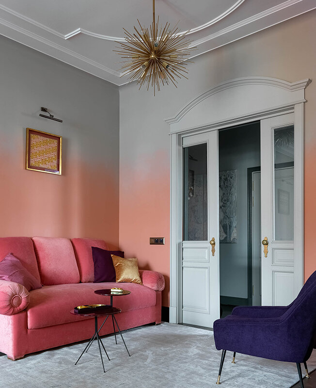 Одна из ярких работ в портфолио дизайнера Екатерины Нечаевой, BHD-Studio, — собственная квартира в Замоскворечье с фантастическим видом на храм Григория Неокесарийского из окон. Квартира площадью 100 кв. метров находится в доходном доме начала прошлого века. Вместе с квартирой дизайнеру достались мебель, декор, старинные фотографии и документы. Некоторые предметы пришлось долго и тщательно восстанавливать. Удалось восстановить и старый паркет, который сняли и уложили заново, за исключением участка в коридоре — там оставили исторический паркет, приклеенный на битум. Старинные детали Екатерина поместила на красочный фон. Цвет стен в комнатах «заимствован» у храма Григория Неокесарийского — этот прием позволил «подружить» интерьер с видом за окнами. В гостиной стены лососевые, в спальне зеленые, а в кабинете желтые. На кухне и в ванной комнате полы с геометрическим рисунком выложены мрамором. Такое решение появилось после поездки в Венецию, где Екатериане приглянулись мраморные полы во Д