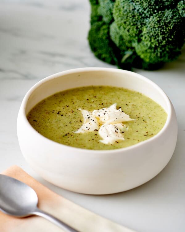 освежающее сочетание вкусов Очень быстрое и на удивление питательное блюдо, которое придется по вкусу даже капризным детишкам. Ингредиенты: на 3 порции Приготовление: Мелко порежьте чеснок, очистите сельдерей, удалите все прожилки и также мелко порежьте, разберите брокколи на соцветия(если вы используете свежую). Измельчите мяту, оставьте несколько листиков для сервировки. Разогрейте в глубокой сковородке немного оливкового масла и обжарьте чеснок и сельдерей до размягчения(2-3 минуты), а затем добавьте брокколи. Немного потушите и добавьте к овощам бульон. Варите суп до готовности брокколи, то есть примерно 5-7 минут, затем добавьте мяту и слегка пюрируйте суп блендером. Я предпочитаю не перебивать суп в однородную массу, а сохранять неоднородную текстуру – так суп получается интереснее. Посолите, поперчите и разлейте по тарелкам, сервируя суп с ложкой рикотты и листиками свежей мяты. Приятного аппетита!