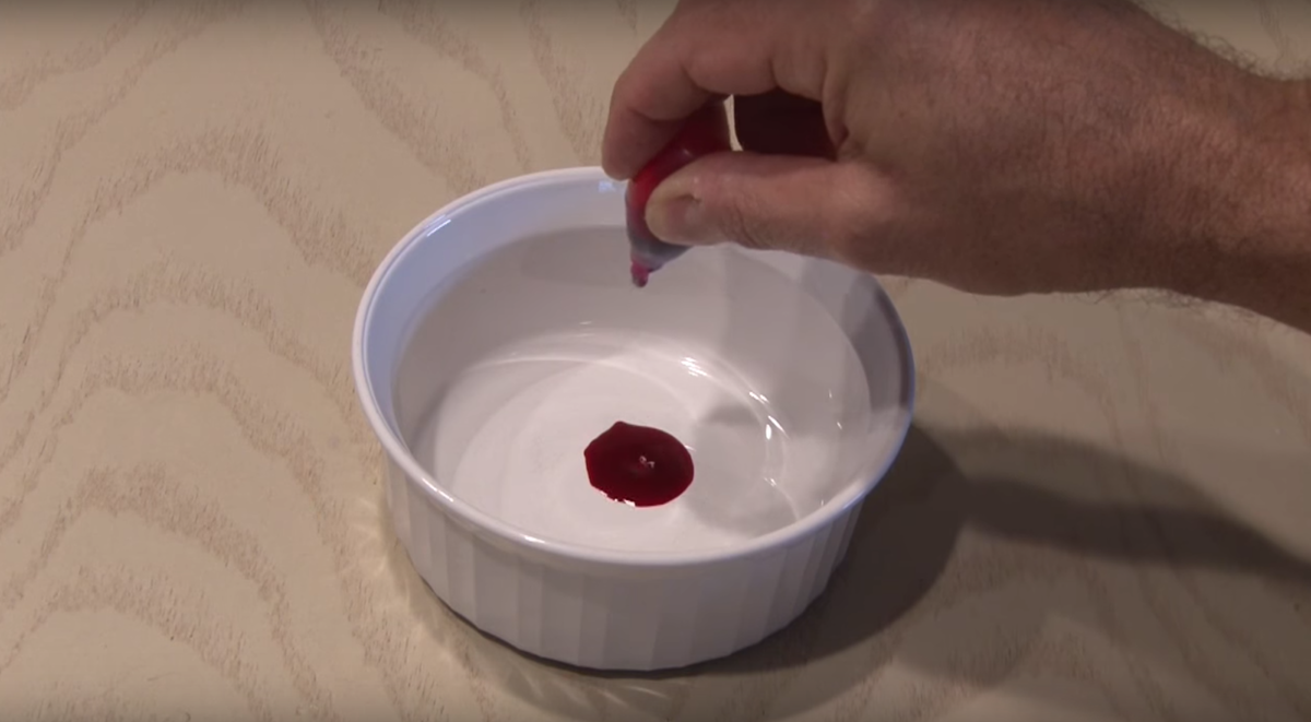 Без лишних слов сразу к делу. Идите в магазин и купите пищевой краситель. Конечно же красного цвета. Хотя, возможно, цветная кровь может напугать еще больше. Зеленая кровь - явный признак серьезной инфекции. Выдавите немного пищевого красителя в посуду или на противень и поставьте поджариться в духовку на 20 минут. Или в микроволновку, если у нее есть функция для настраивания точной температуры. Необходимо "запечь" кровь при 180 градусах Цельсия. После этого она превратиться в что-то такое. Получилось? Отлично! Теперь это нужно соскоблить, чтобы получился порошок. В этом и заключается магия. Засохнув, пищевой краситель становится еще более концентрированным. И потребуется совсем немного этого порошка, чтобы устроить настоящий кровяной потоп. Добавьте немного порошка на щетку друга и он очень удивится, когда будет чистить зубы. Поверьте, даже если он обычно сначала мочит щетку под струей воды, это даст хороший эффект. Вы также можете добавить немного порошка на бритву или в головку д
