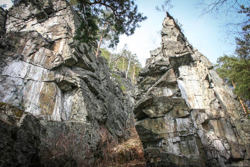 Неподалёку от деревни Исакова Алапаевского района Свердловской области расположено одно из самых загадочных мест на реке Реж – камень Писаный, получивший название за нанесённые на скальной поверхности древние рисунки. На мой взгляд, это одна из двух самых интересных писаниц реки Реж, наряду с Шайтан-камнем. Статью о Шайтан-камне ранее я уже размещал (если не читали, внизу будет ссылка), теперь пришёл черёд рассказать и о Писаном камне. Камень Писаный представляет собой группу скал высотой до 30-40 метров. Один из скальных останцев имеет необычную форму, внешне напоминающую огромный выступающий клык. Рядом – расщелина между двух скальных стенок. Скала выглядит достаточно необычно. Неудивительно, что её приметили ещё в давние времена. Здесь расположена писаница, получившая название Исаковской – по названию стоящей неподалёку деревни. Эти наскальные рисунки известны местным жителям давно. Ещё в 1910 году краевед И.Я. Кривощеков упоминал скалу Писанец около деревни Исаковой: «…здесь была