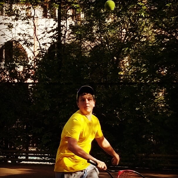 В данной статье расскажу, как я впервые поиграл в большой теннис. Весной этого года мы с семьей, решили съездить в Турцию отдохнуть, так как у моего отца был день рождения. Отель у нас был 5 звезд и поэтому он был полон интересных мест, таких как игровая комната, бильярд, много разных баров, а также и теннисный корт. Корт мы увидели сразу, как приехали, так как он был при въезде в отель, но уже через пару часов про него забыли. И вот в один из вечеров мы вспомнили, что в нашем распоряжение есть место для игры в теннис и решили поиграть. вот только, первые дни когда мы приходили поиграть корт был занят. Только уже через пару дней мы узнали, что там существует запись. И с тех пор записывались на два часа в день, пока не уехали. Вставали в шесть утра и до восьми играли, потом шли на завтрак. Обычно я играл с отцом, но иногда приходили мать и сестра. Вот такая фотография получилась у моей мамы, на ней видно и меня с ракеткой и мяч. Играли ли вы в эту замечательную игру? Если да, то пол