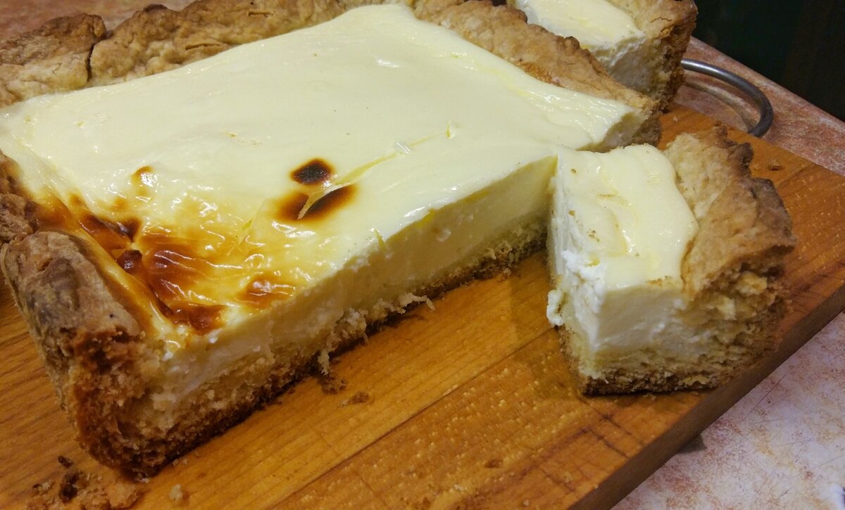*ванилин – по желанию. Приготовление: 1)Взбить размягченное масло, яйцо и сахар. 2)Добавить просеянную муку и разрыхлитель. Замесить тесто. 3)Разъемную форму (d 24 см.) смазать маслом. Тесто раскатать в пласт 0,3 см и с помощью скалки перенести в форму. Распределить по форме, сделать бортики примерно 3 см. 4)Для начинки венчиком взбить сметану с яйцами, ванилином и сахаром до однородности. 5) Начинку выливаем на тесто - должно получиться так, что бортики будут выше, чем начинка. 6) Духовку разогреваем до 180-200 градусов. Выпекать пирог 30-40 минут. Готово! Приятног