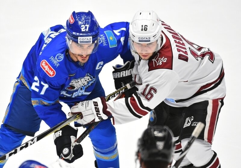 Барыс 3 - Динамо Рига 4 ОТ Шайбы забросили: Маринес (Д), Асетов (Б), Дарзиньш (Д), Старченко (Б) большинство, Картер (Д) большинство, Асетов Б), Сотниекс (Д). На матче присутствовало 4300 зрителей. Динамовцы с первых секунд устремились в зону соперника. Против Редлихса применили силовой прием, падая, Микелис задел клюшкой лицо соперника и получил малый штраф. Барыс бездарно распорядился шансом открыть счет. Казахстанские хоккеисты не сделали ни одного броска в створ ворот Андрея Макарова. На третьей минуте судьи удалили Павла Акользина. Динамовцы пытались,что-то придумать у ворот Барыса, но у них это плохо получалось. На 7 минуте рижане наказываются командным штрафом за нарушение численного состава. Снова подопечные Скабелки растратили численное преимущество в пустую. Постепенно Барыс прибрал нити управления игрой в свои руки, но дело до результативного броска не доходит. Первый период закончился нулевой ничьей. Барыс перебросал рижан 18-6. Броски в створ 8-2. В атаке хозяева провели