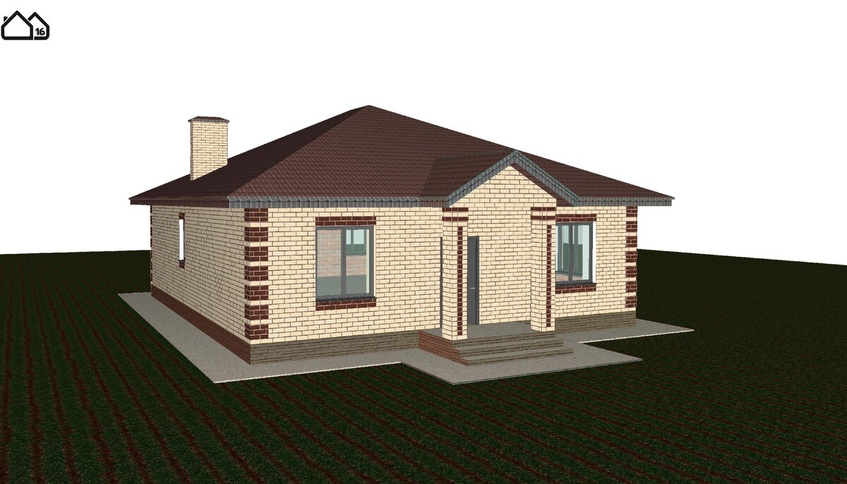 Планировка дома решена входной группой объединяющей крыльцо и тамбур, холлом, через который соединяются все помещения дома, а именно три спальни, два санузла и совмещенные гостиная с кухней. Здесь имеется выход на террасу и далее на приусадебный участок.