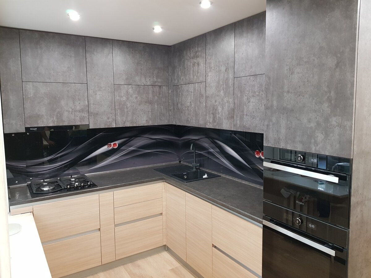 По столешнице то же все просто, МДФ в пленке, но сделал её немного темнее ящиков сверху, что бы то же выделить на общем фоне, но потом правда пришлось побегать по магазинам что бы найти фартук под неё, но вроде получилось. Фартук то же МДФ панель, то же дешевенькая.