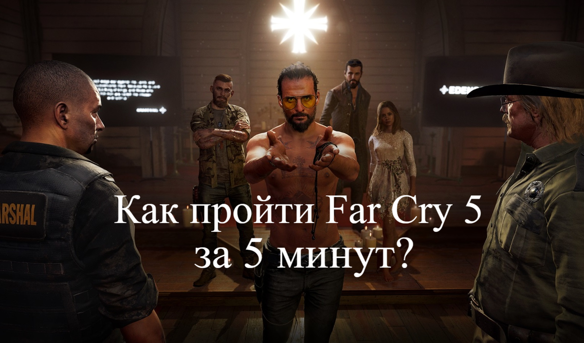 Всём привет, геймеры и геймерши!!! Сегодня мы с вами пройдём игру Far Cry 5 за 5 минут!!! Да да, прямо до титров на высоком уровне сложности всего за 5 минут! Этот секрет нам в сообществе написал наш участник Ян Гринберг. Итак , как мы помним игра начинается с того что летит вертолёт с группой для ареста очень серьёзного сектанта который основал и вооружил свою банду прямо в сердце штата Монтана. По пути нас пытается отговорить от ареста местный шериф который по уши повяз в местных делах и очень боится этого сектанта! Но это ему не удается и вертолёт садиться в городке мечтной секты где все до зубов вооружены. И мы отправляемся на арест в местную церковь. Добравшись до церкви и зайдя внутрь мы предъявляем ордер на арест главарю секты. После недолгой беседы и словесной разборки с окружившими нас сторонниками Иосифа , мы должны надеть на него наручники. А теперь просто НЕ НАДЕВАЕМ ЕМУ НА РУКИ НАРУЧНИКИ и ждём! Ну а что же всё таки произойдет смотрите в нашем видео!!! Вступай в наше с