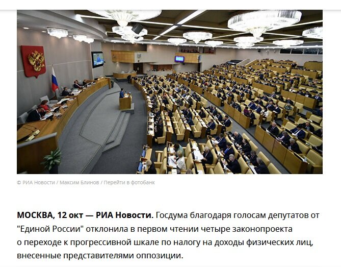 Благодаря депутатам от партии "Единая Россия",которую давно следует переименовать на "Единая ОЛИГАРСИЯ"-закон о прогрессивном налогообложении не прошел даже в первом чтении! Первый заместитель рководителя фркции-Андрей Исаев-мотивировал отказ поддержать закон тем, что "после введения плоской шкалы налога собираемость этого налога резко возросла, и началось погашение долгов по заработной плате врачам и учителям, потому что основным получателем подоходного налога являются субъекты Федерации. "- То есть-давайте не будем злить олигархов, чтобы не уходили "в тень"! Я никак не возьму в толк-все это серьезно или какой-то дикий фарс ??? То есть,- посадить бабульку за кражу пачки масла-легко, а схватить за руку расхитителя государственной собственности, а именно так олигархи-ВСЕ ОЛИГАРХИ!-начали получать свердоходы-государство инструментов не имеет! Не дай Бог осерчают-денежки уволокут! Как это собираемость налога НДФЛ может снизится ???? Физических лиц, Карл!!! Она может снизится, если фи