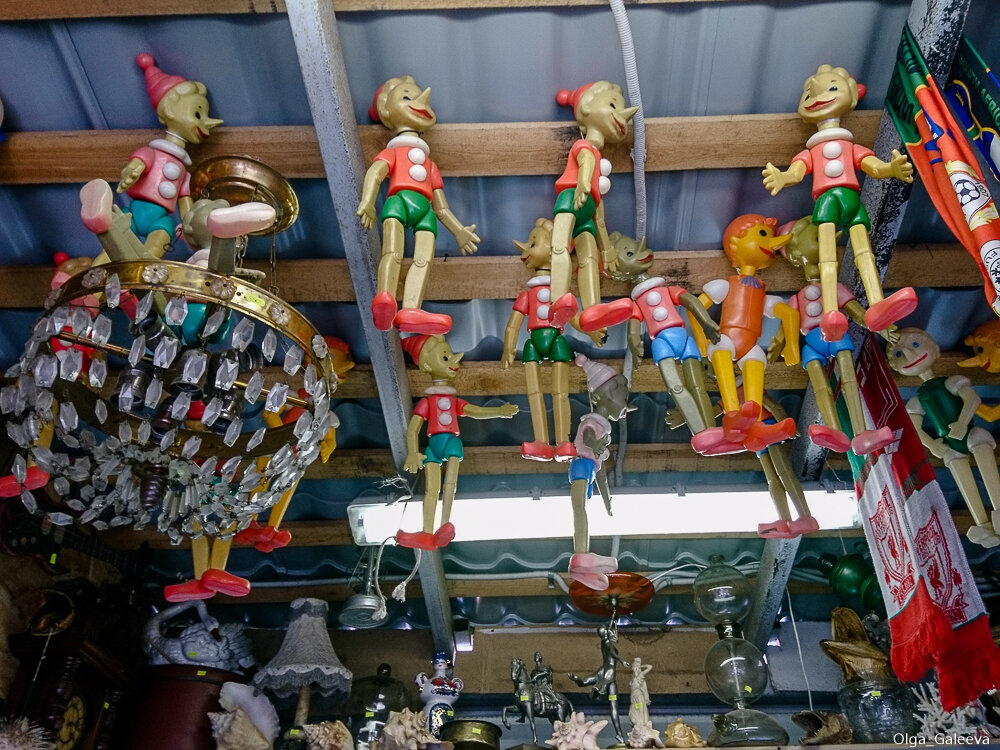 "Сходил на блошку - как в музее побывал" - я довольно часто произношу эту фразу. Стоишь, рассматриваешь непонятные фиговинки, дореволюционные коробочки от конфет, старые водолазные костюмы, шляпки 30-х годов. Причем, в отличии от музея, все это можно потрогать, покрутить в руках. Но особенно мне нравится разглядывать композиции из разного рода хлама, которые продавцы любят возводить у себя на прилавках. И вот, в очередной раз разглядывая фото таких "композиций", я поняла, это же ИНСТАЛЛЯЦИИ! Самые настоящие! На подобные мы ходим поглазеть в ММОМА. Но только на блошке они собраны из знакомых и близких сердцу (человека родившегося в СССР) предметов. "Инсталляция — форма современного искусства, представляющая собой композицию, созданную из различных предметов, материалов или форм. Вступая в различные комбинации, вещь освобождается от своей практической функции, приобретая функцию символическую. Смена контекстов создаёт смысловые модификации, игру значений..." Эта фотография моя любимая.