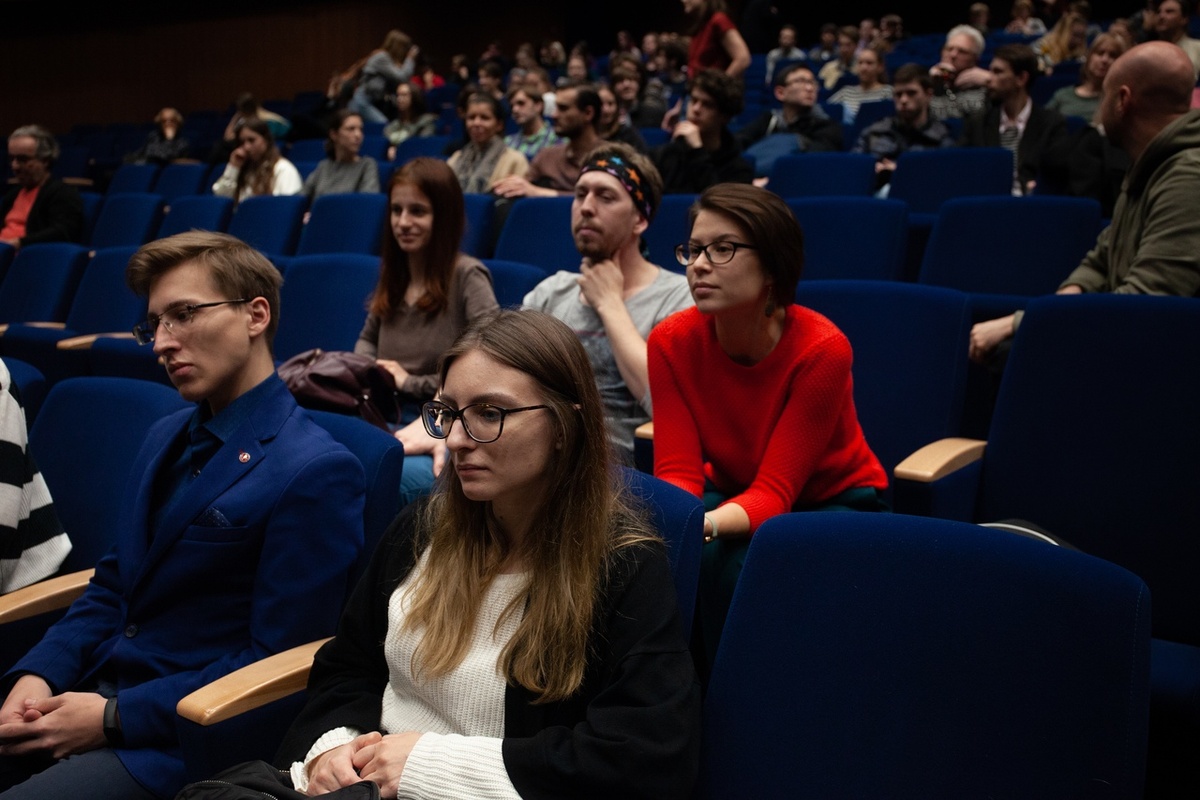 16.10.2019. 1 часть. Понравился фильм "Ночь". Интересное режиссёрское решение некоторых сцен: например, цветовая гамма в сцене с Днём Рождения подруги, когда главный герой танцевал в забытье. Сценарный замысел хороший, но местами действие затянуто. Когда действие затягивается, внимание начинает рассеиваться и ты, как зритель, прерываешь эмоциональный контакт с героем. Например, некоторые сцены я просидел в телефоне просто от скуки. Однако честь и хвала съёмочной группе за работу, они на верном пути развития. Редко на экранах ВГИК можно увидеть историю со счастливым концом. Дмитрий, 21 *** Больше всего запомнились фильмы "Не верь всему, о чем ты думаешь" и "Same time, same place". Оба философские, оба невероятно красиво сняты, стилизованы, музыка подобрана великолепно. "Не верь всему, о чем ты думаешь" просто поразил. Хочу пересмотреть еще раз, такие многогранное работы каждый раз раскрываются по-новому. В "Same time,same place" съемки клиповые, я такое не очень люблю, но настолько ка