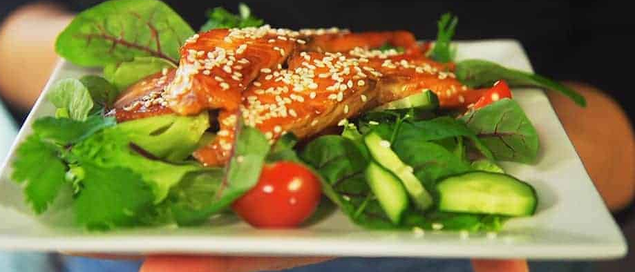 РЫБНЫЙ САЛАТ В ЯПОНСКОМ СТИЛЕ ПРИНОСИТ КУСОЧЕК АЗИИ НА ТАРЕЛКИ Рыбный салат в японском стиле содержит секретный ингредиент - темный, соленый сладкий соус терияки. Соус терияки - это японский сладкий и соленый соевый соус. Хорошо подходит для рыбы; особенно с радужной форелью или лососем. Он может использоваться для маринования сырья, добавляться в пищу только на стадии выпечки или использоваться в качестве приправы для еды. В этом рецепте готовый соус терияки варят на сковороде с кусочками радужной форели, поэтому его вкус впитывается в кусочки радужной форели. Восхитительная комбинация радужной форели и терияка вызывает в ресторане вкус этого повседневного блюда, похожего на ресторан, и привносит немного роскоши в обеденный стол. Соус терияки, приготовленный из сои, рисового уксуса, сахара и имбиря, также легко приготовить, если у вас просто есть энтузиазм. Изготовление даже не занимает много времени, Разрешить ингредиенты соуса мягко варить в кастрюле. Затем соус охлаждают, разлива