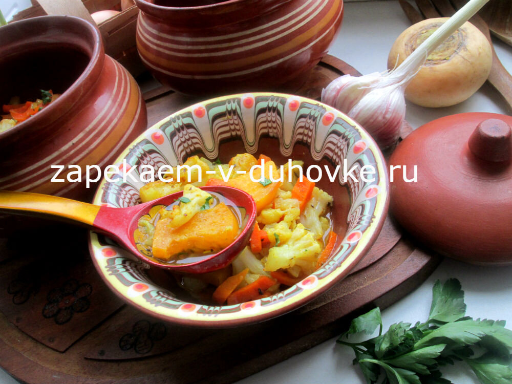 Репа,запеченная в горшочках, томленная, как в печи, с овощами